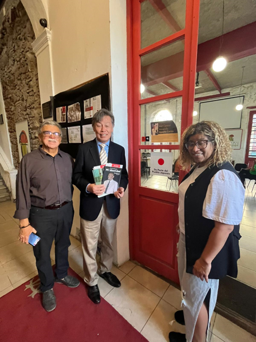 Desde la izquierda: Coordinador Área Cultura y RRPP de dicha ONG, Julio Cesar Salorio, Embajador Kenich Okada, y Presidenta de la Casa de la Cultura Afrouruguaya, Dra. Cristina Silva