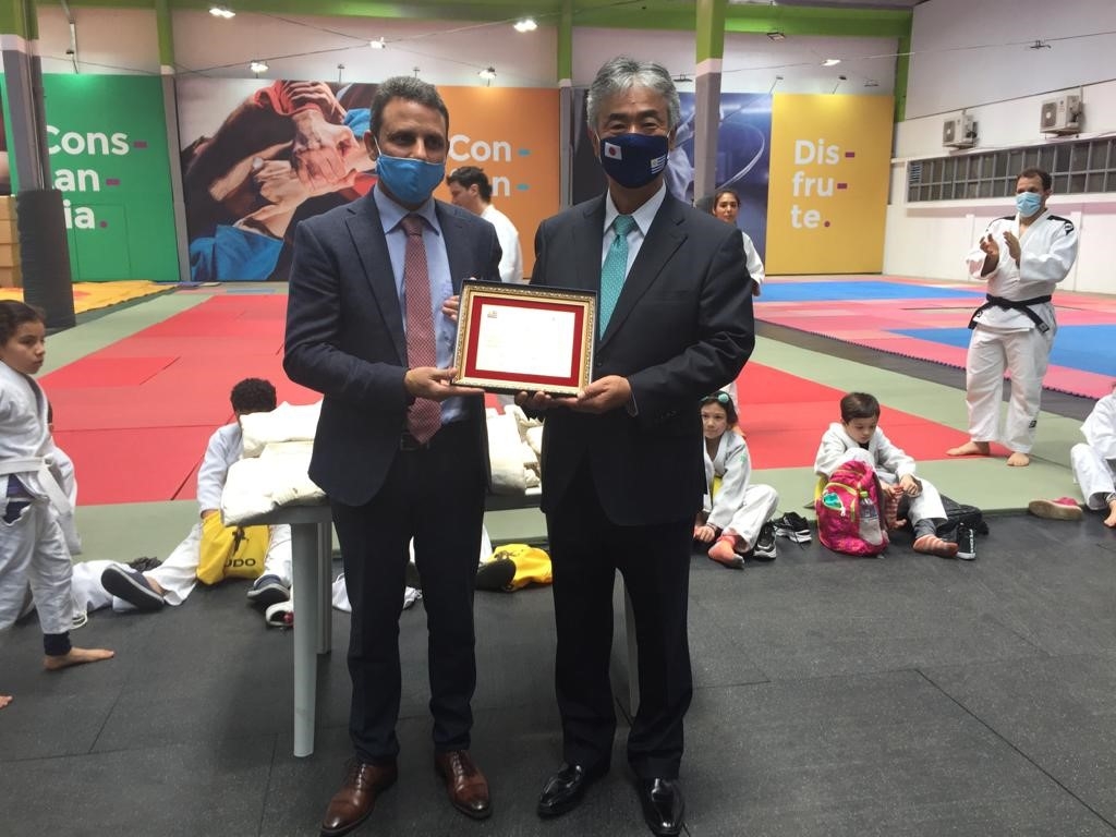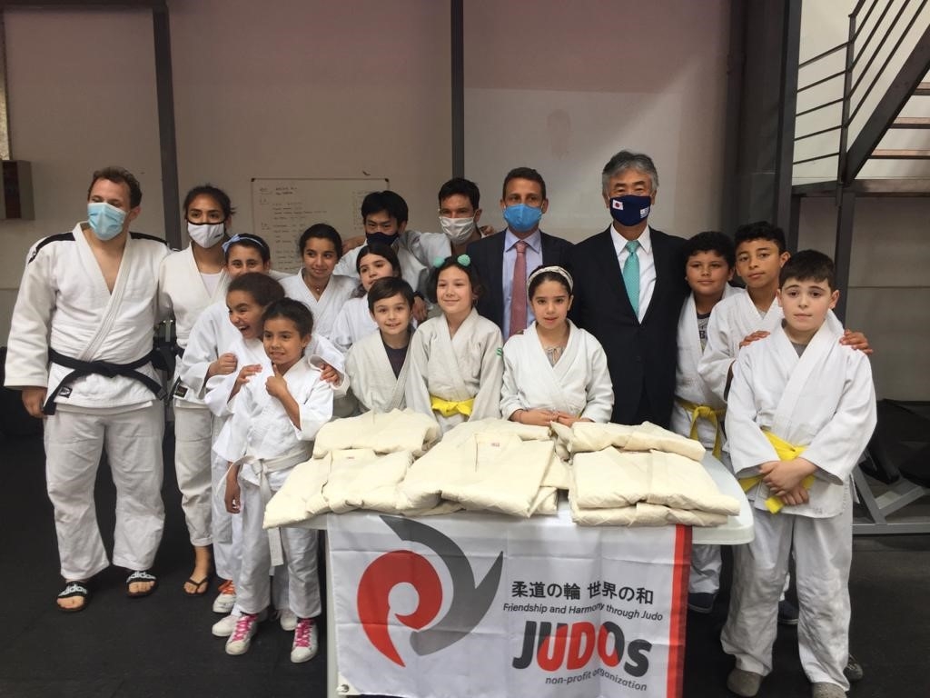 10月24日、眞銅竜日郎大使は格闘競技センターにて開催されたNPO法人JUDOsから寄贈された100着の柔道着の供与式に出席しました。