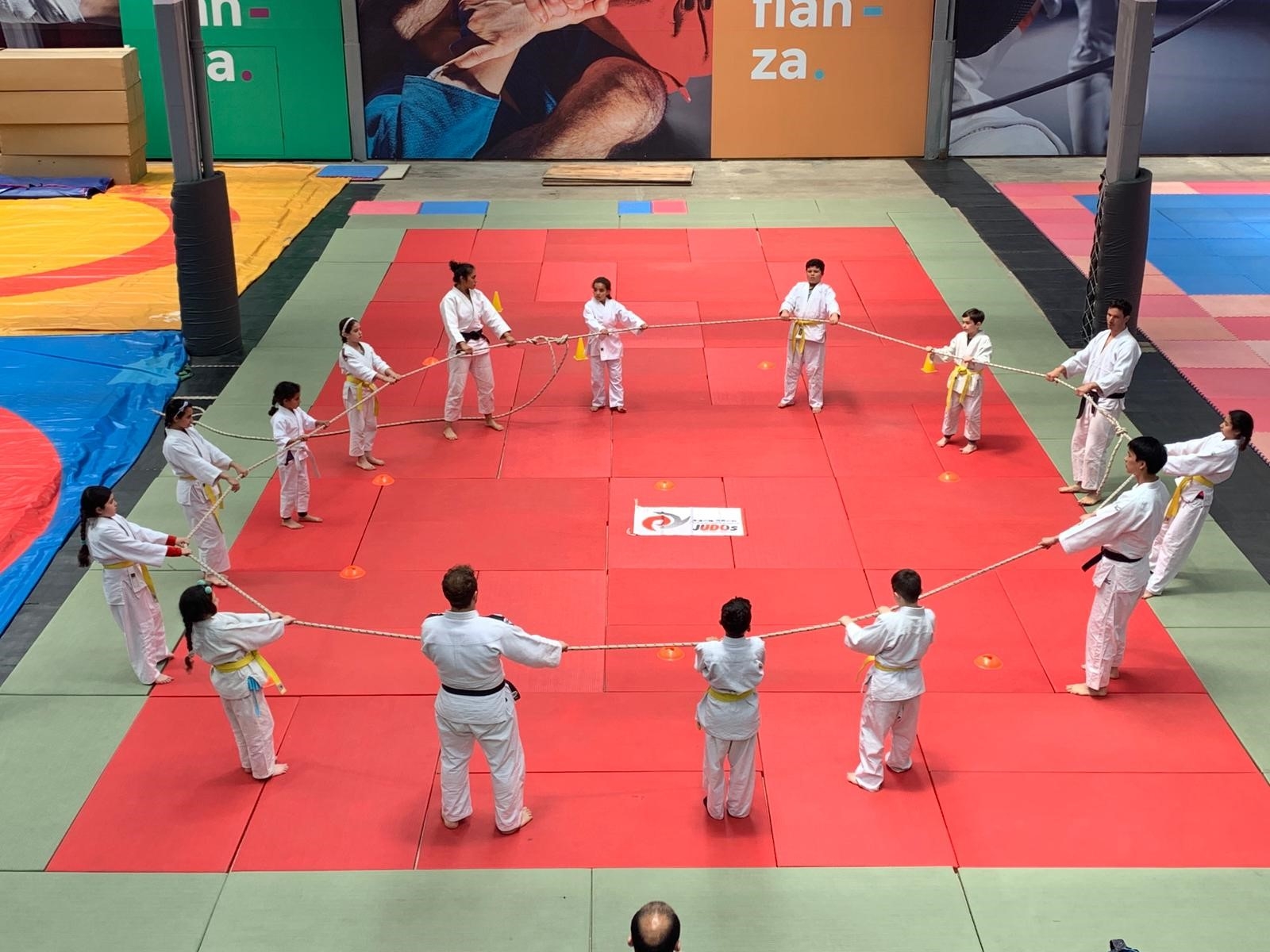 本供与式では、社会開発省と柔道連盟の共同プロジェクトとして、柔道を通じた青少年の育成と社会の健全な開発を目的としたプロジェクト”Camino a la Flexibilidad” に参加している少年少女が柔道のデモンストレーションを披露しました。