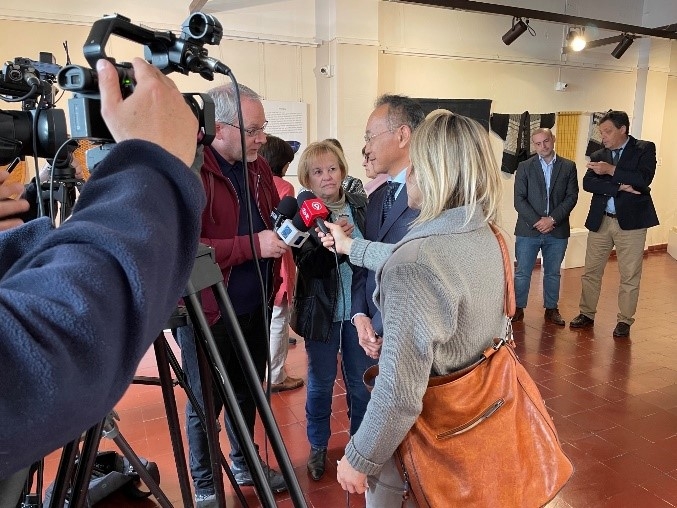 サンホセ美術館マンゲネイ館長 メディアの取材に応じる土生川臨時代理大使