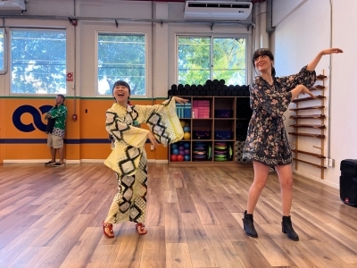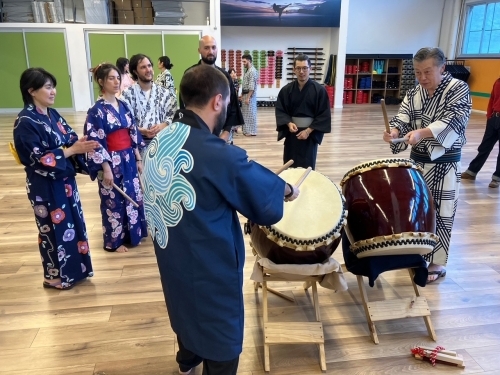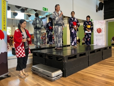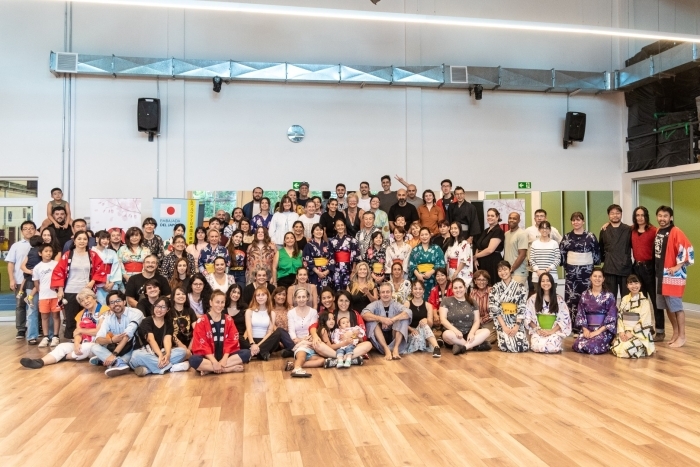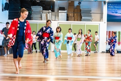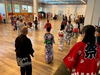 当地の日系人や、公募にお応え頂いたウルグアイの方々にお集まりいただき、アルゼンチンからお招きしたリリアナ・アキタ講師の指導の下、日本の方なら誰もが懐かしく、ウルグアイの方にとってはとても新鮮な盆踊りの時間を過ごすことが出来ました。当日は、日本人会のモンテビデオ太鼓(和太鼓)の伴奏の中、参加者のテンションは、みるみる上がりました。多くの方にとっては初めての盆踊り体験でしたが、参加頂いた皆様の熱意と関心はとても高く、気付けば皆が円となって、まるで昔からそうしていたかのように、盆踊りを踊られていました。いつかウルグアイで、本当の盆踊り大会が開催できたらと、願わずにはいられません。