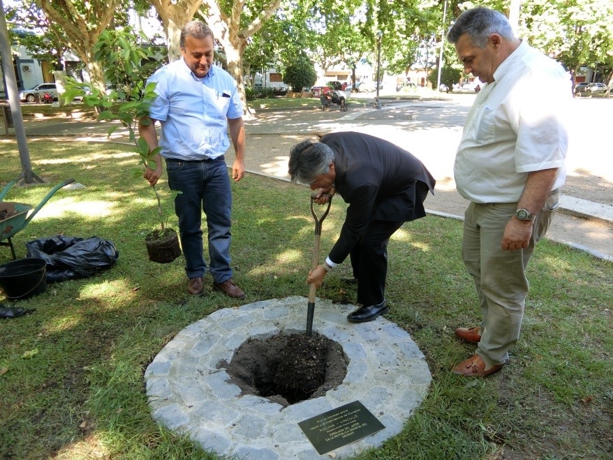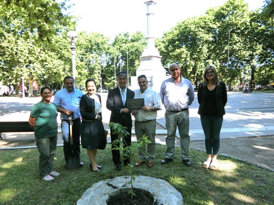 県庁での会合の後、日・ウルグアイ二国間関係の益々の発展を願って,市内の独立広場に,友情の印として桜の木を植樹しました。