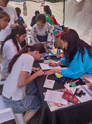 大使館のスタンドでは日本文化に関する雑誌を配布し、折り紙教室を行いました。また、茶道のデモンストレーションをしました。