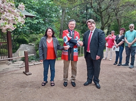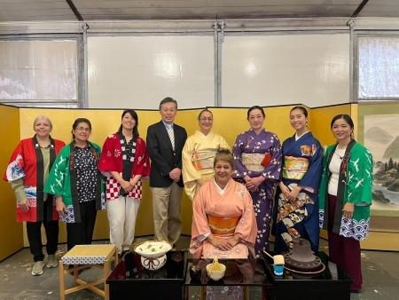 開会式では、岡田大使が御来場の皆様に歓迎の挨拶を述べ、日本庭園へ招待しました。ブラネス博物館館長のヘルマン・ハスコ氏、モンテビデオ市国際協力局長のダイアナ・フェラーロ氏も、挨拶を述べられました。また、ビビャーナ・レペット市庁事務局長も出席されました。