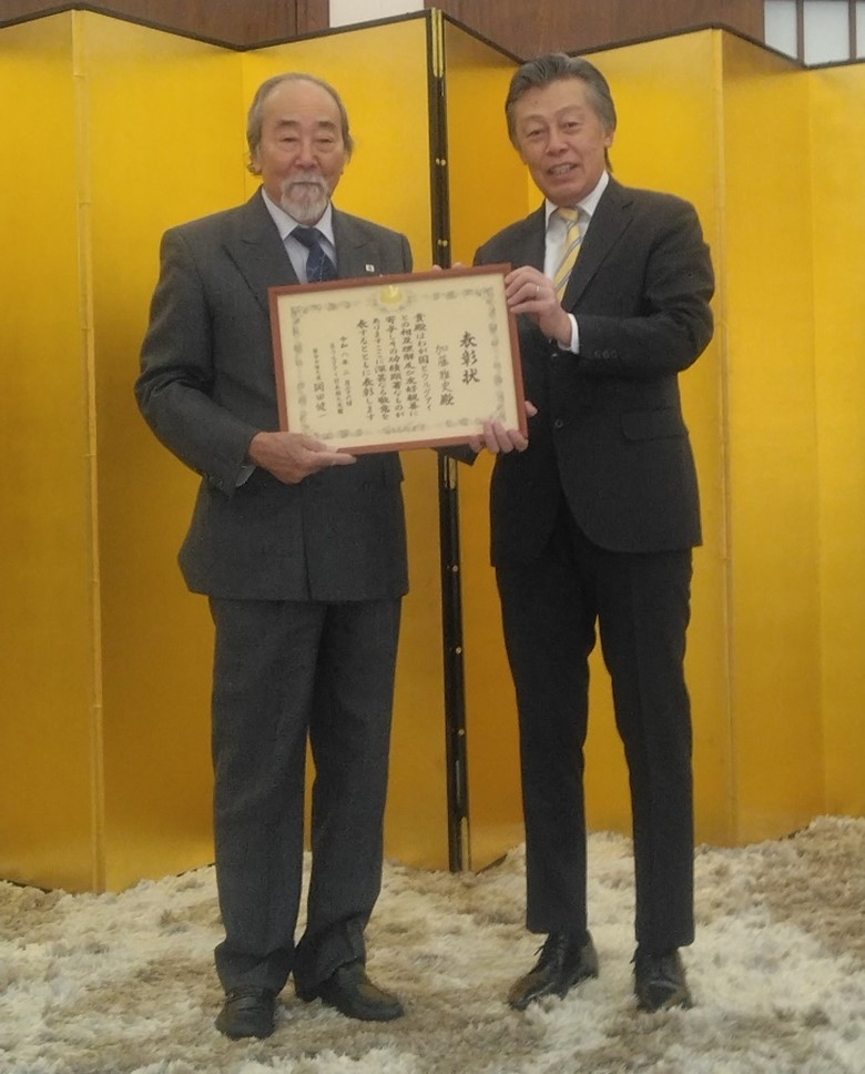被表彰者である加藤雅史氏は、1987年にウルグアイと日本の食材を取り扱う輸出入会社であるアイチウルグアイをモンテビデオに設立されました。特に、日本の農産物輸出促進が強まった2010年代以降、日本酒や和牛をウルグアイにて販売すべく取り扱われ日本の農産物の輸出促進に貢献されました。また、40年に及ぶウルグアイにおける日本人としてのビジネス経験を活かし、日本大使館や日本からの要人のみならず当地に進出する日系企業に当地事情についての助言等を実施するほか、ウルグアイ政府の日本理解促進に貢献をされました。